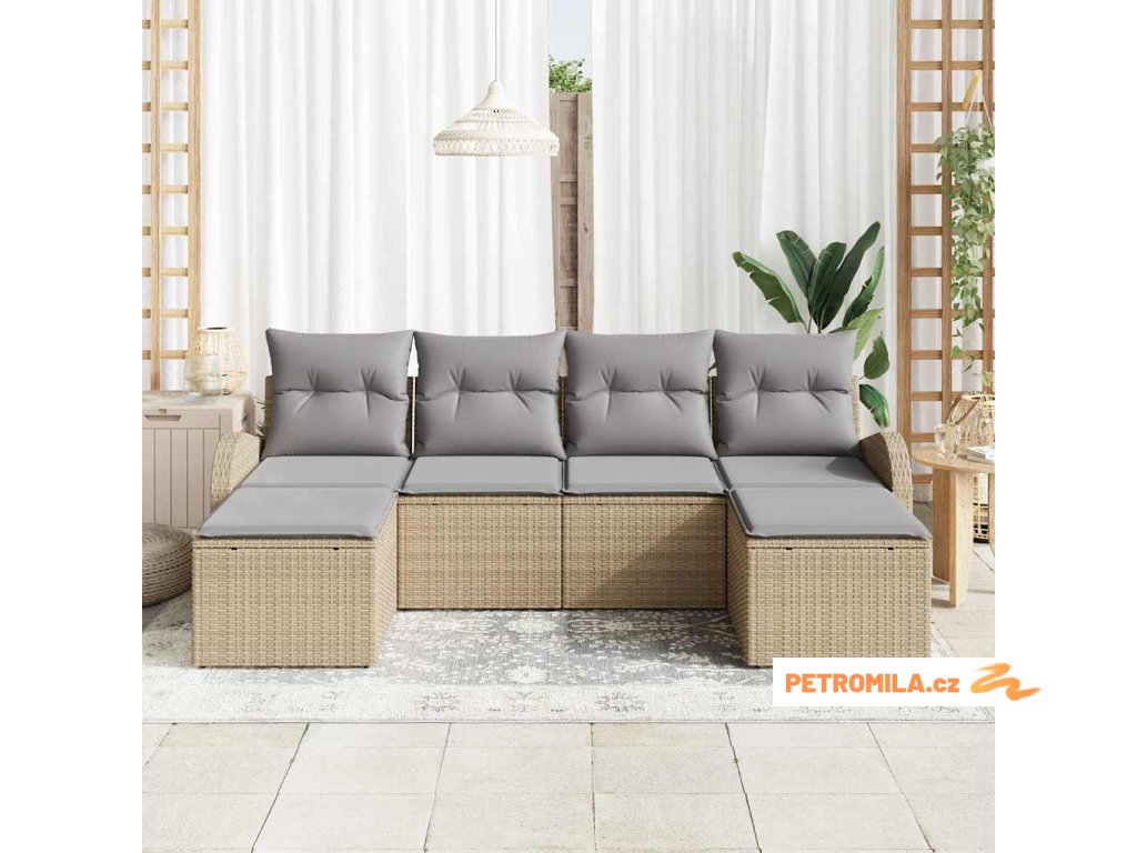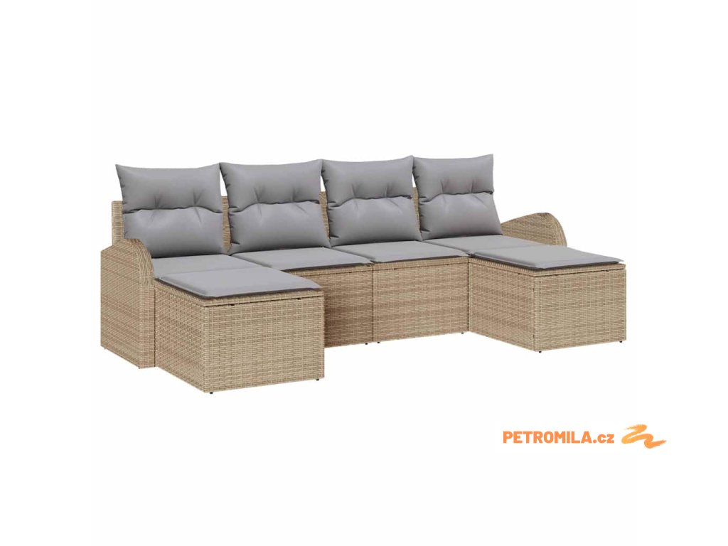 Sada zahradních pohovek s polštářem 6 pcs Béžová Poly Ratan