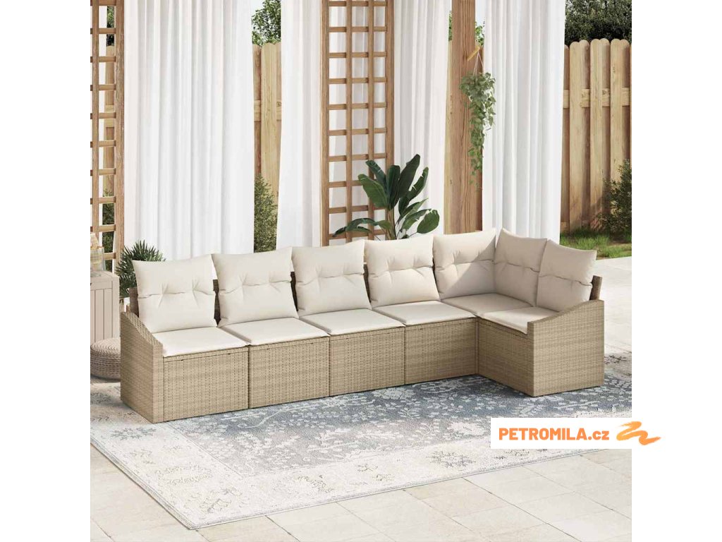 Set pohovek s polštářem 6 pcs Béžová a krémová polyratan