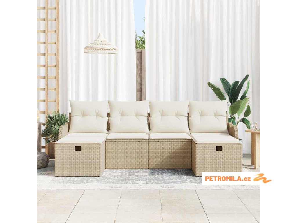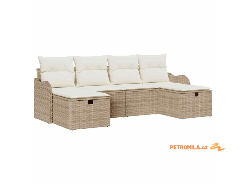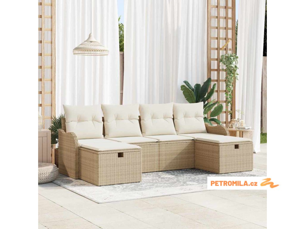 Set pohovek s polštářem 6 pcs Béžová a krémová polyratan
