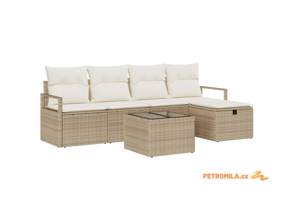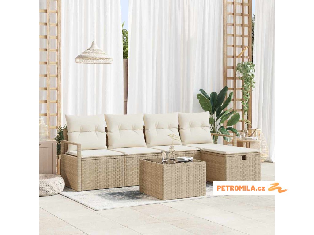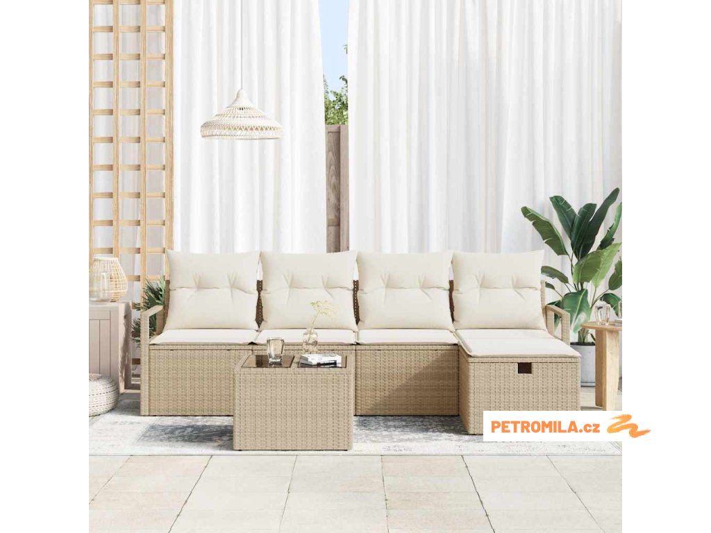 Set pohovek s polštářem 6 pcs Béžová a krémová polyratan