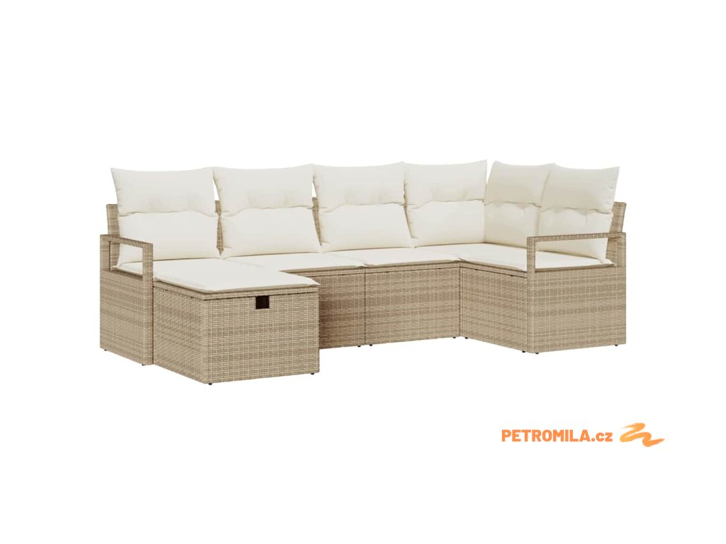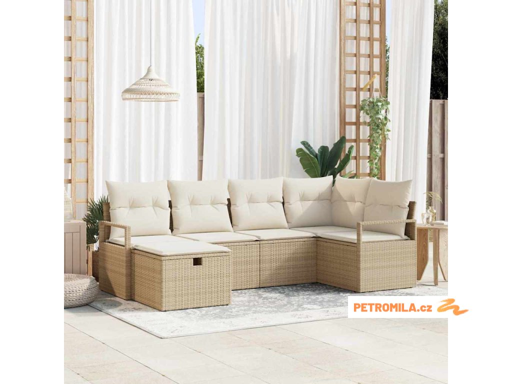 Set pohovek s polštářem 6 pcs Béžová a krémová polyratan
