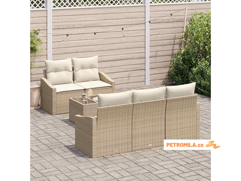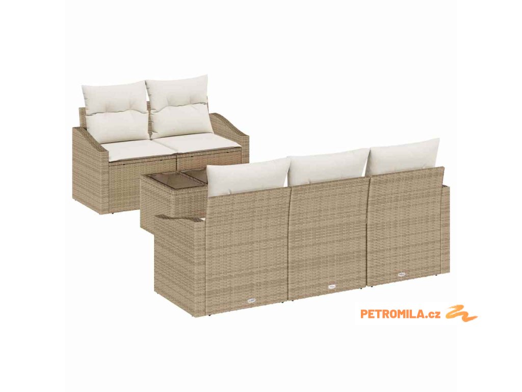 Set pohovek s polštářem 6 pcs Béžová a krémová polyratan