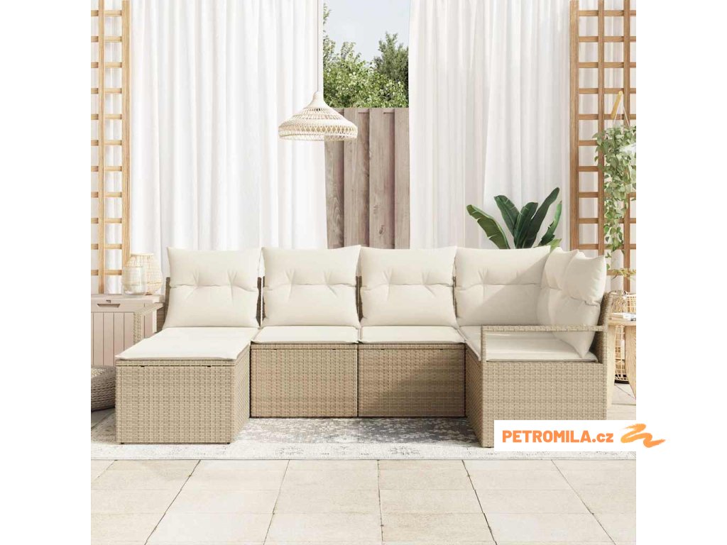 Set pohovek s polštářem 6 pcs Béžová a krémová polyratan
