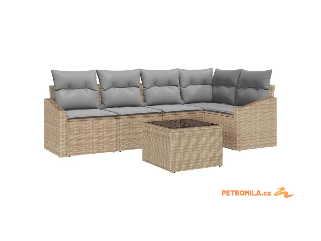Set pohovek s polštářem 6 pcs Béžová a Světle šedá polyratan