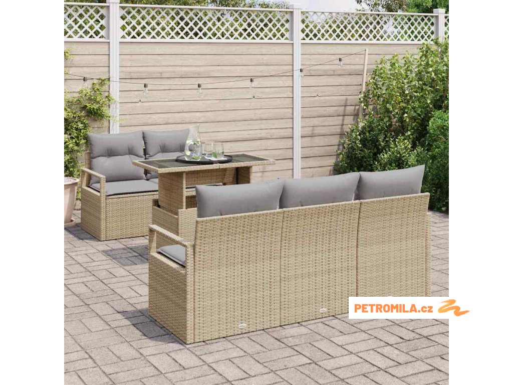 Set pohovek s polštářem 6 pcs béžová a světle šedá polyratan