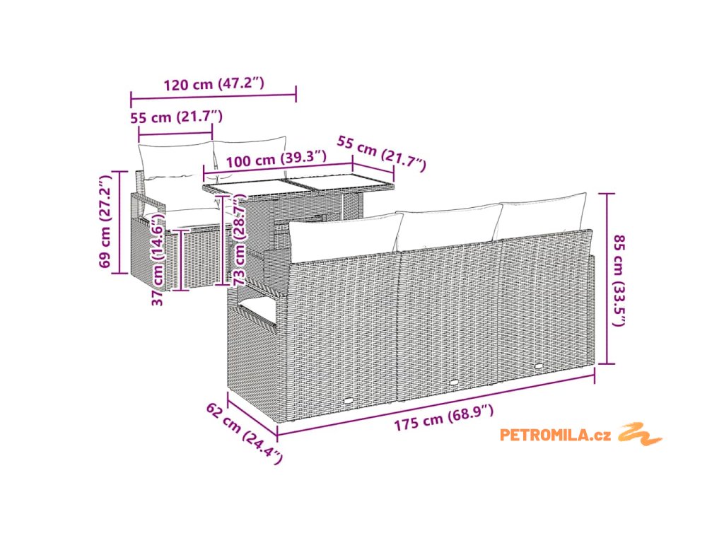 - Vlastnosti/Funkce/Design: Tato sedačka má modulární vlastnosti, které vám umožňují nastavit rozložení podle potřeby, ať už pořádáte párty, nebo si užíváte klidného odpoledne. Moderní linie přidávají sofistikovaný nádech vaší zahradě, zatímco odolný design zajišťuje dlouhodobé potěšení bez téměř žádných kompromisů v stylu nebo pohodlí.