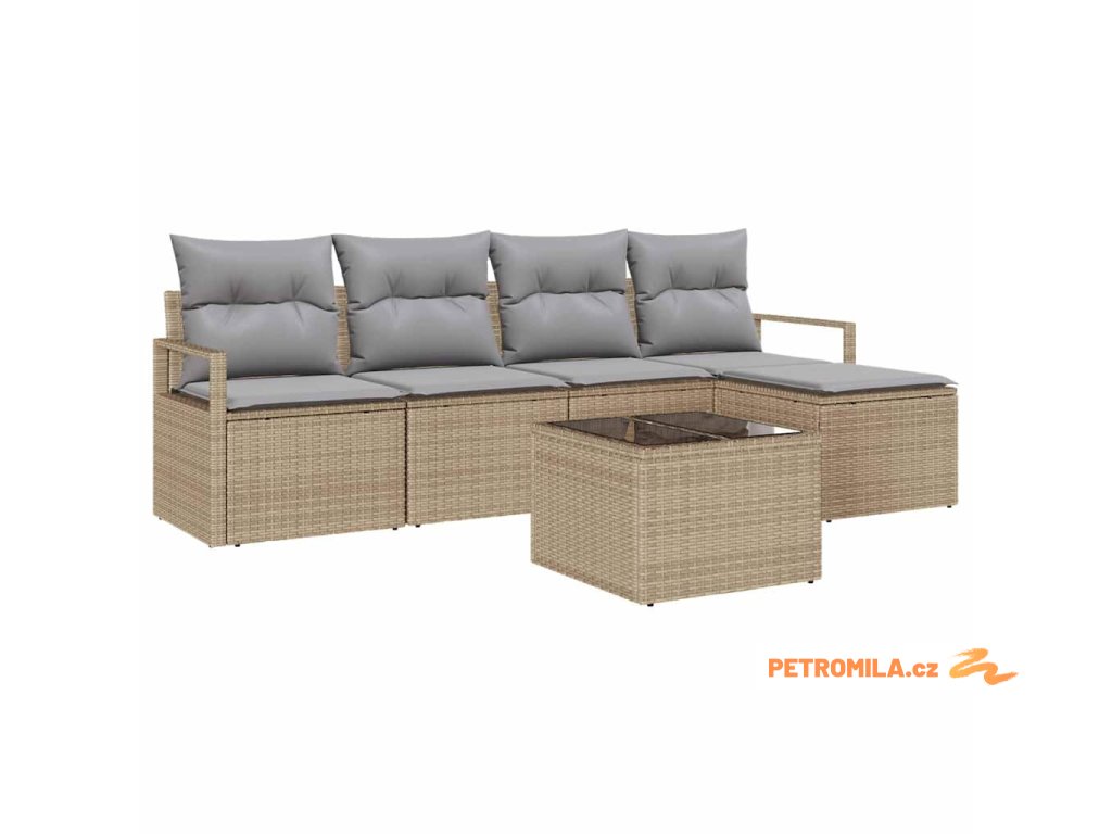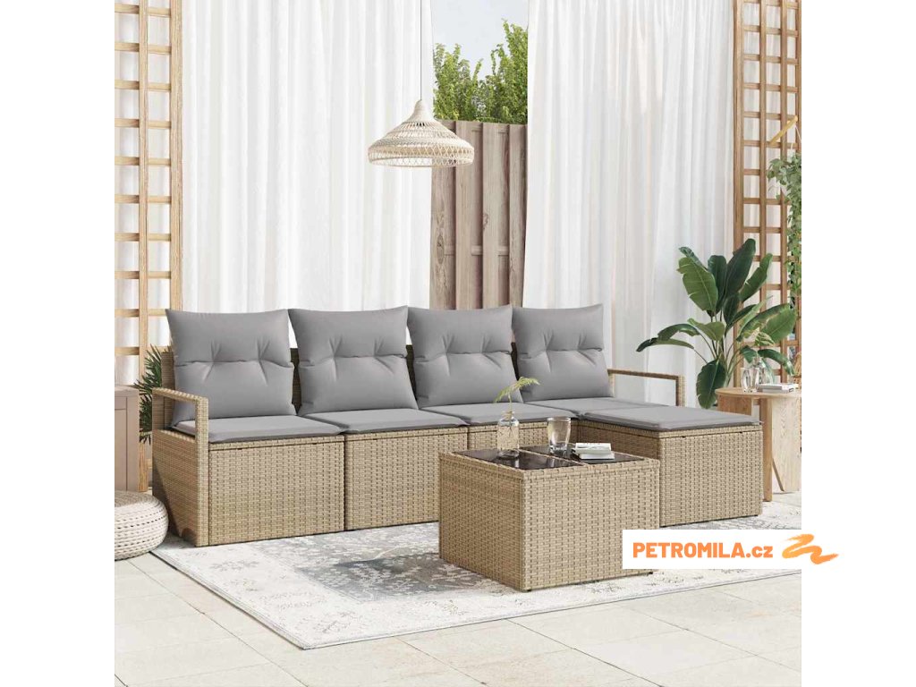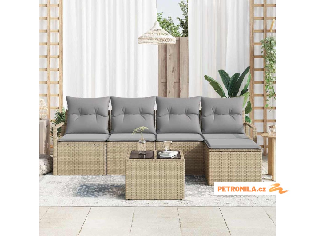 Set pohovek s polštářem 6 pcs Béžová a Světle šedá polyratan