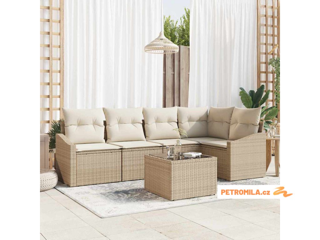 Sada zahradních pohovek s polštářem 6 pcs Béžová Poly Ratan
