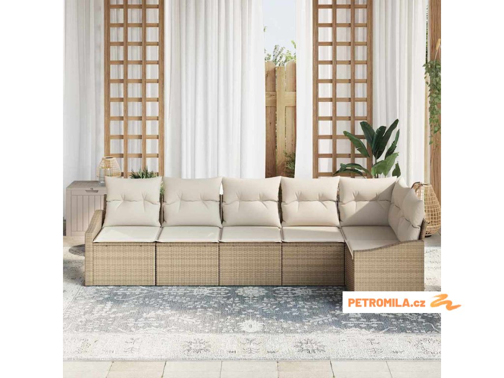 Set pohovek s polštářem 6 pcs Béžová polyratan