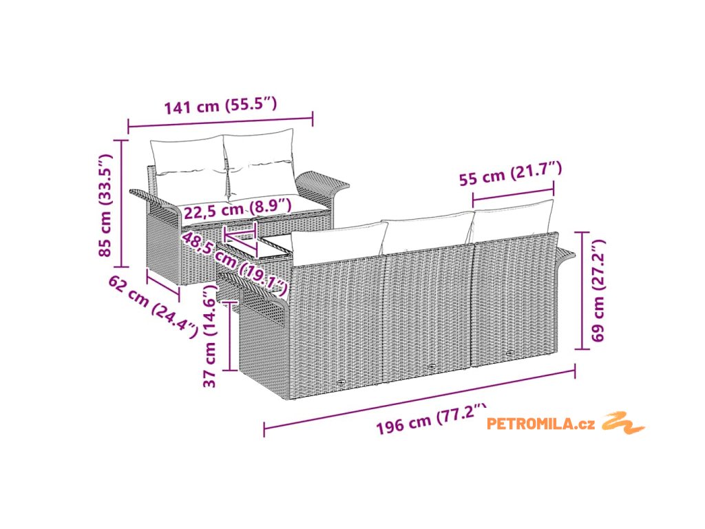 - 5 x sedací polštář: 55 x 55 cm (D x Š)