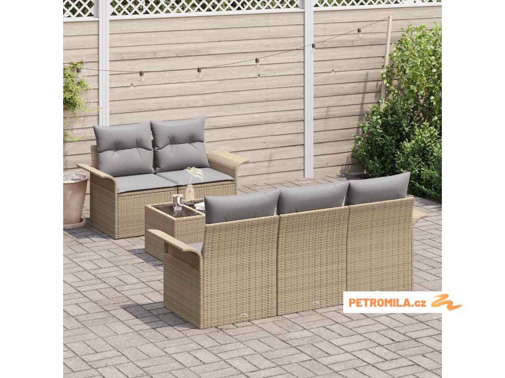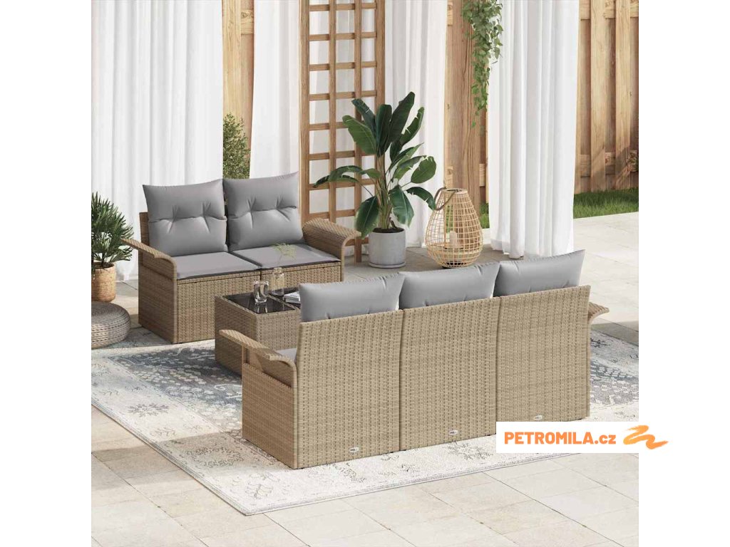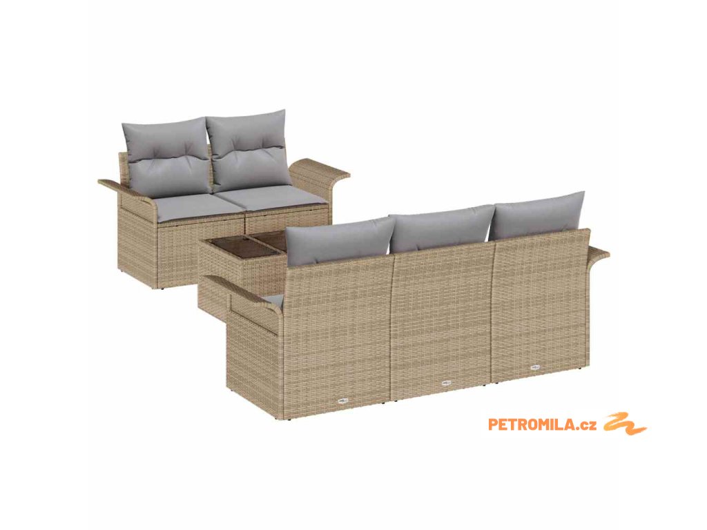 Sada zahradních pohovek s polštářem 6 pcs Béžová Poly Ratan