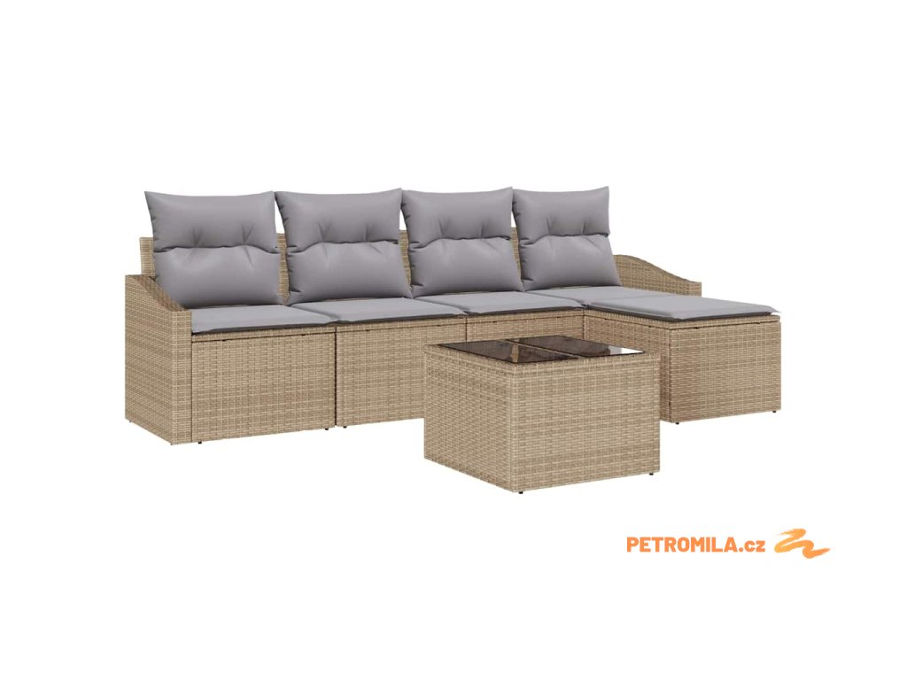 Set pohovek s polštářem 6 pcs Béžová polyratan