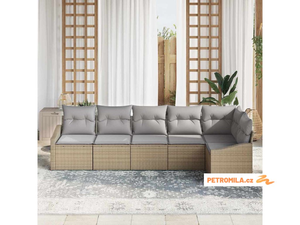 Sada zahradních pohovek s polštářem 6 pcs Béžová Poly ratan