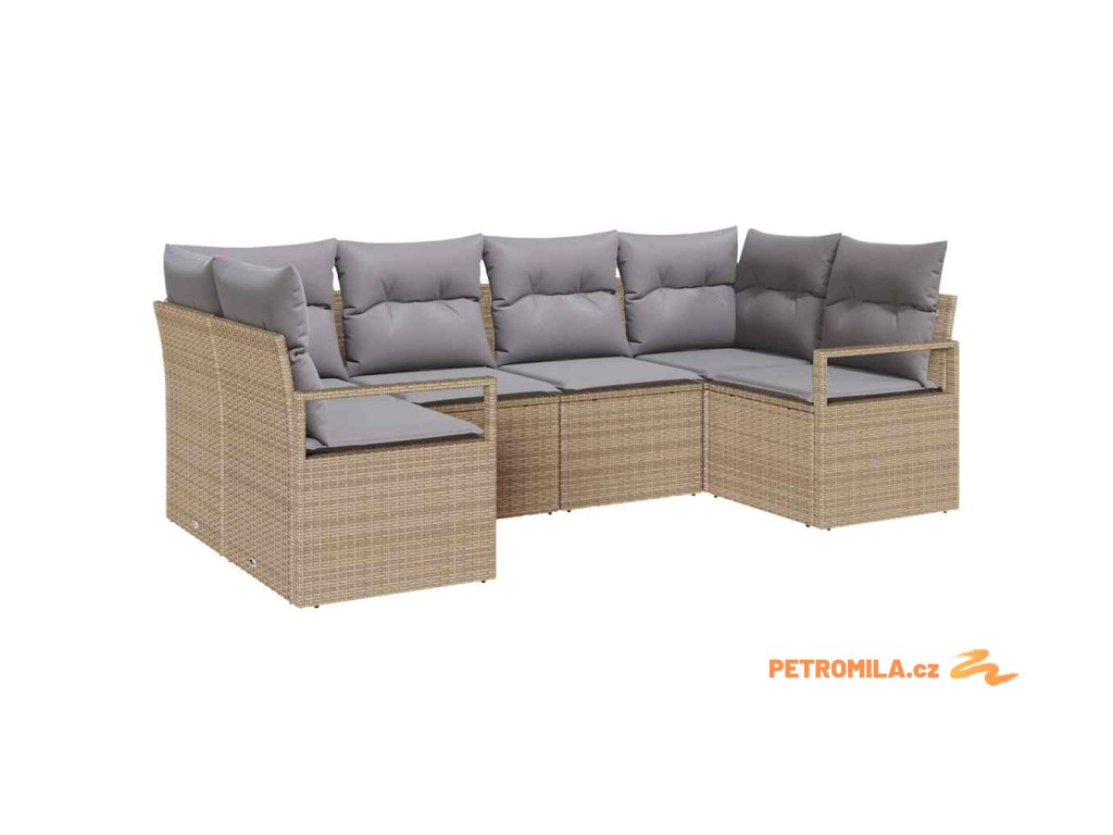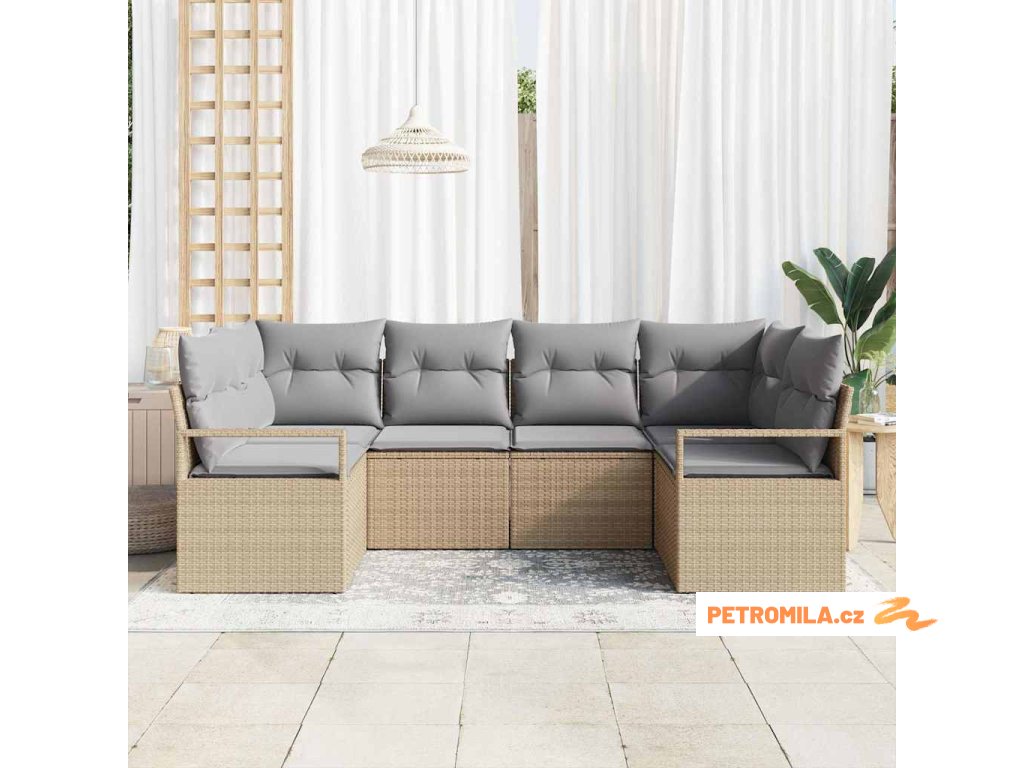 Sada zahradních pohovek s polštářem 6 pcs Béžová Poly ratan