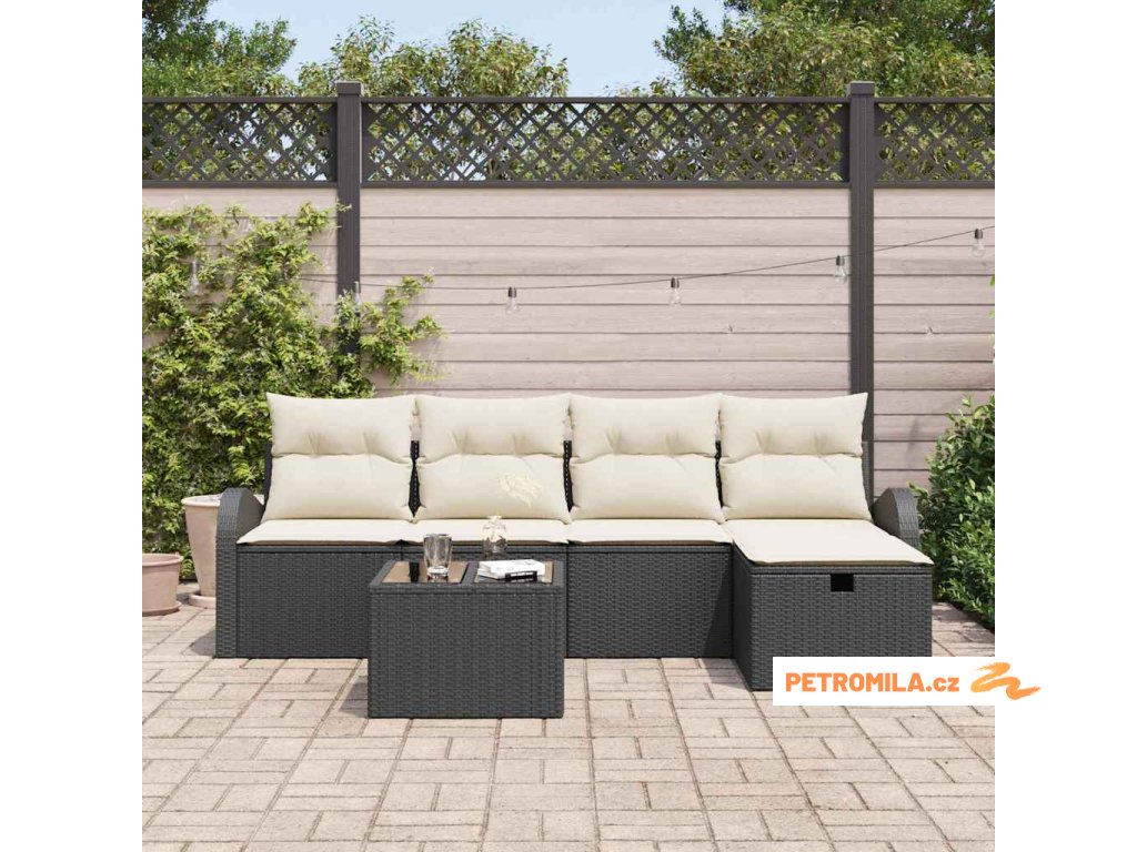 Set pohovek s polštářem 6 pcs Černá a krémová polyratan