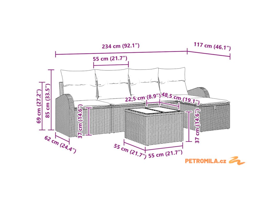 - Kompletní sofa set Tento set zahrnuje vše, co potřebujete pro pohodlné venkovní sezení: modulární pohovku, kterou snadno přizpůsobíte prostoru a stylu. Manuální úpravy opěrek rukou a opěradla zajišťují flexibilitu a pohodlí na míru.
