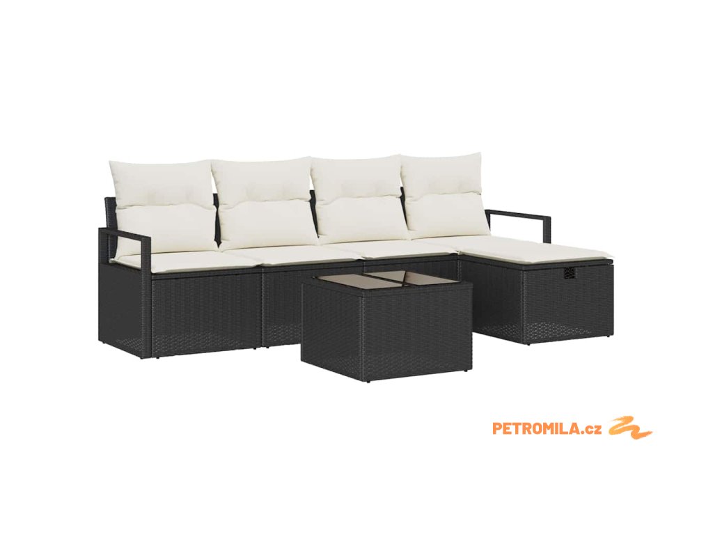 Set pohovek s polštářem 6 pcs Černá a krémová polyratan