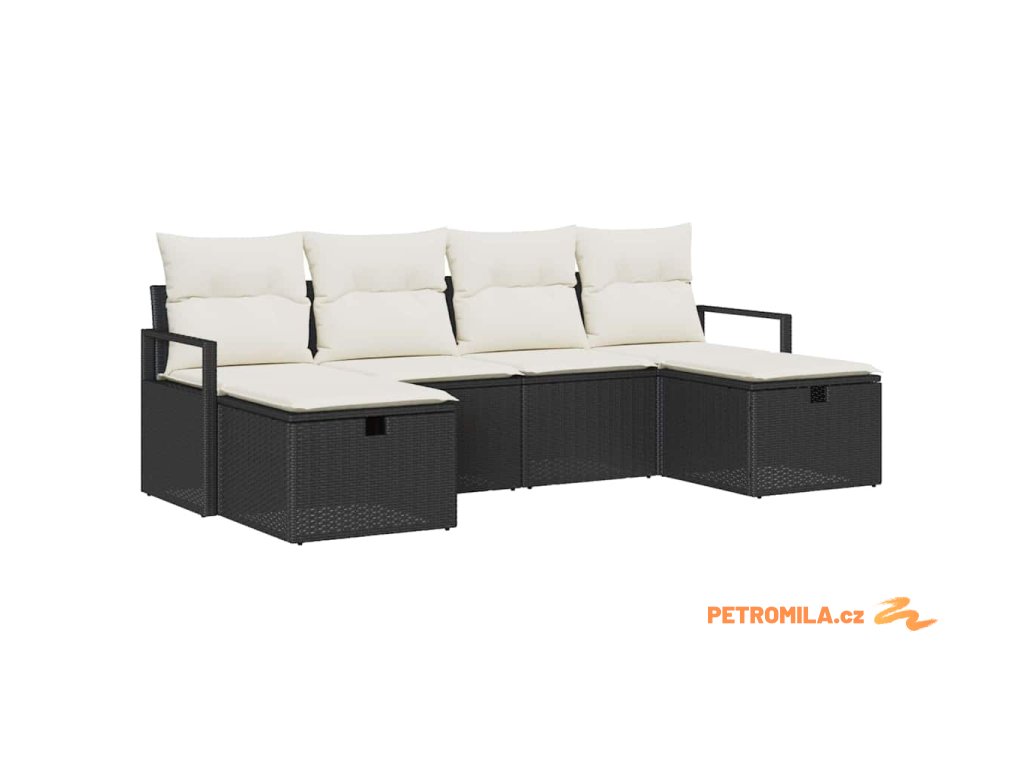 Set pohovek s polštářem 6 pcs Černá a krémová polyratan