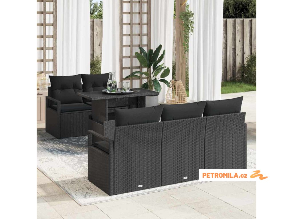 Set pohovek s polštářem 6 pcs Černá polyratan