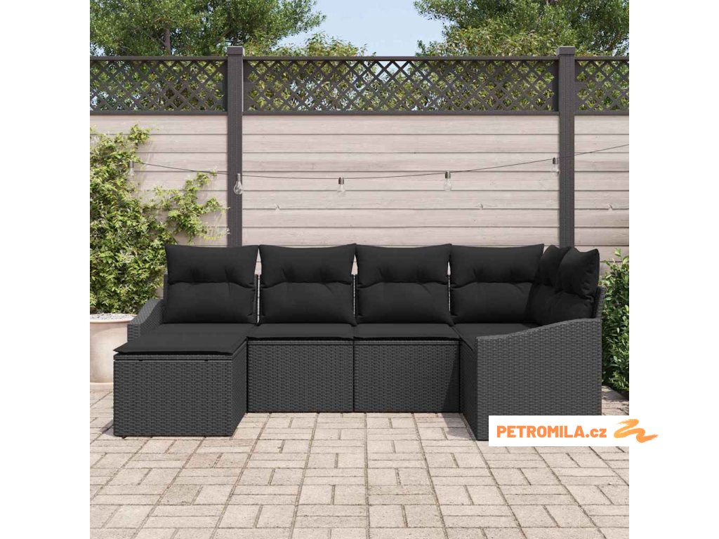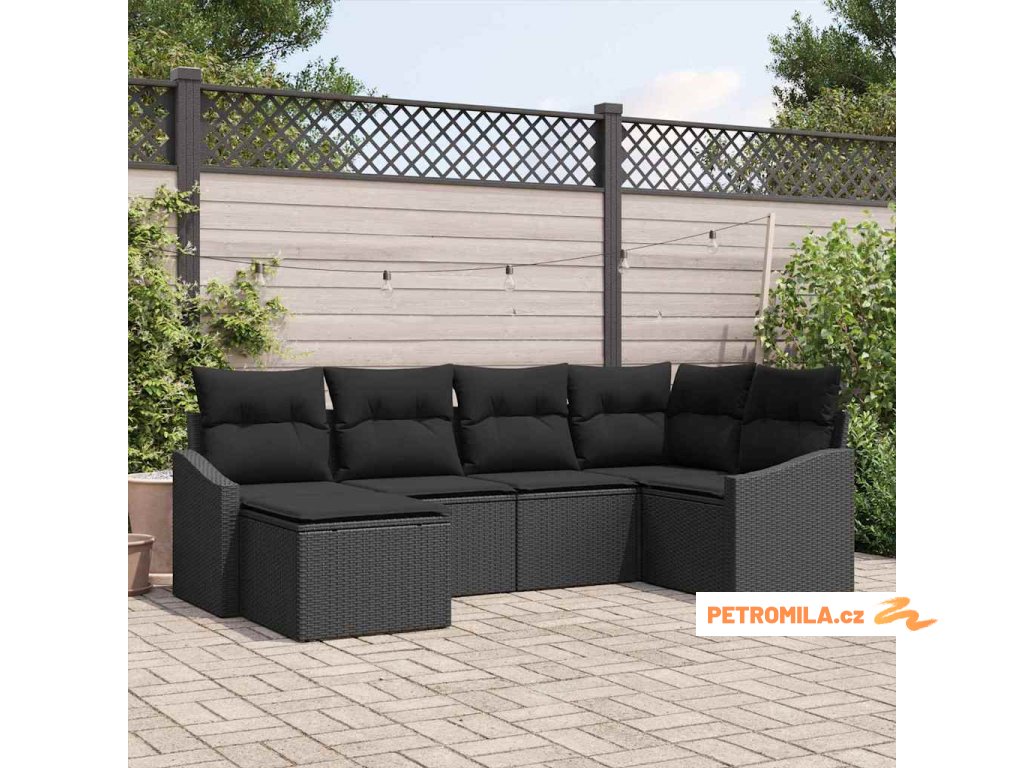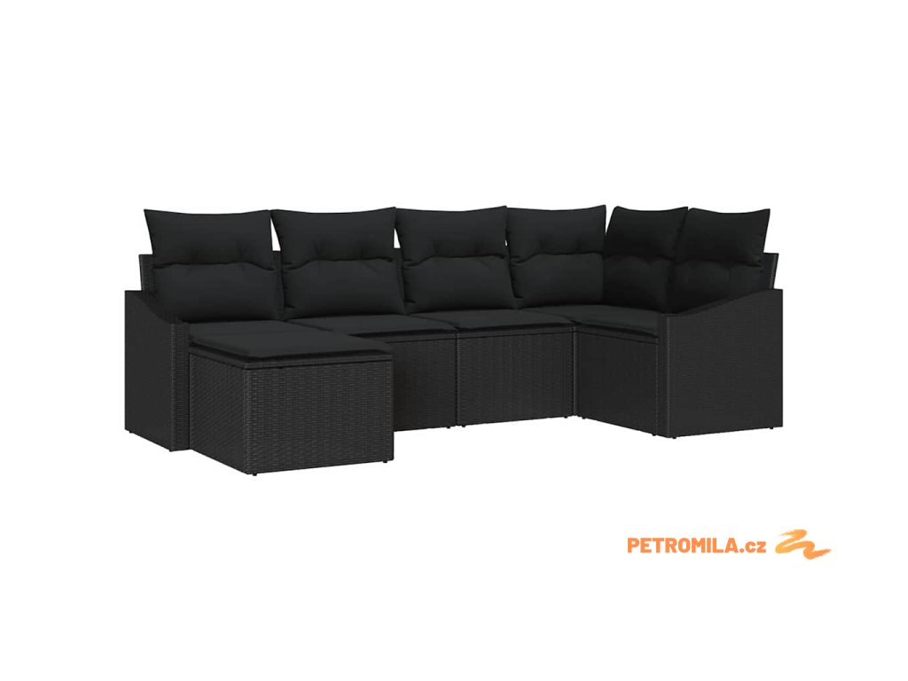 Set pohovek s polštářem 6 pcs Černá polyratan