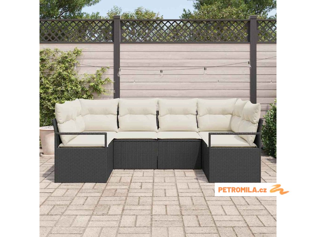 Set pohovek s polštářem 6 pcs Černá polyratan