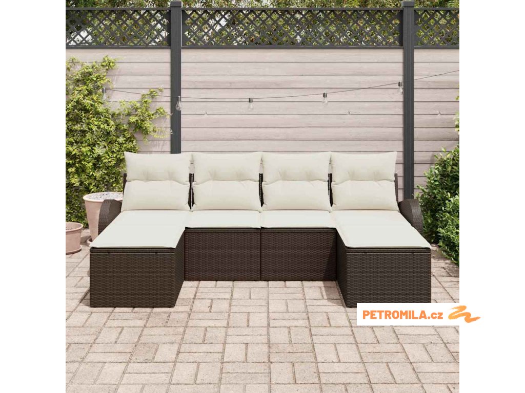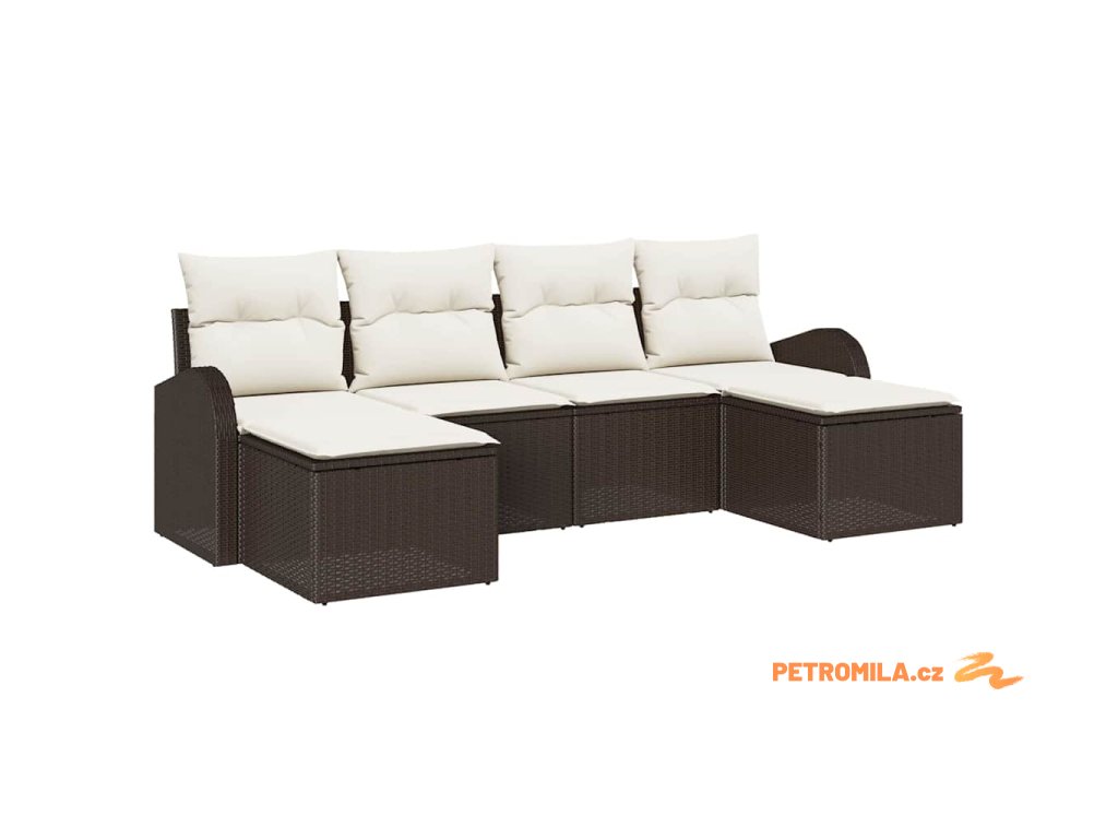 Set pohovek s polštářem 6 pcs Hnědá a bílá polyratan