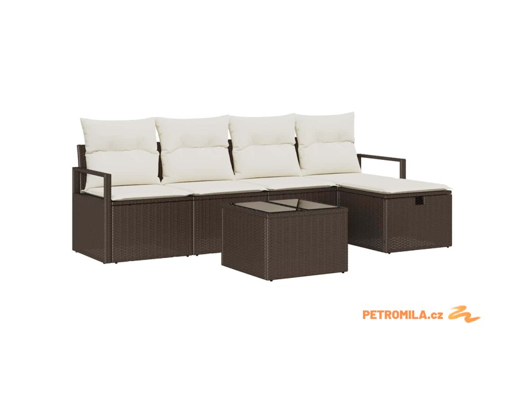 Set pohovek s polštářem 6 pcs Hnědá a krémová polyratan