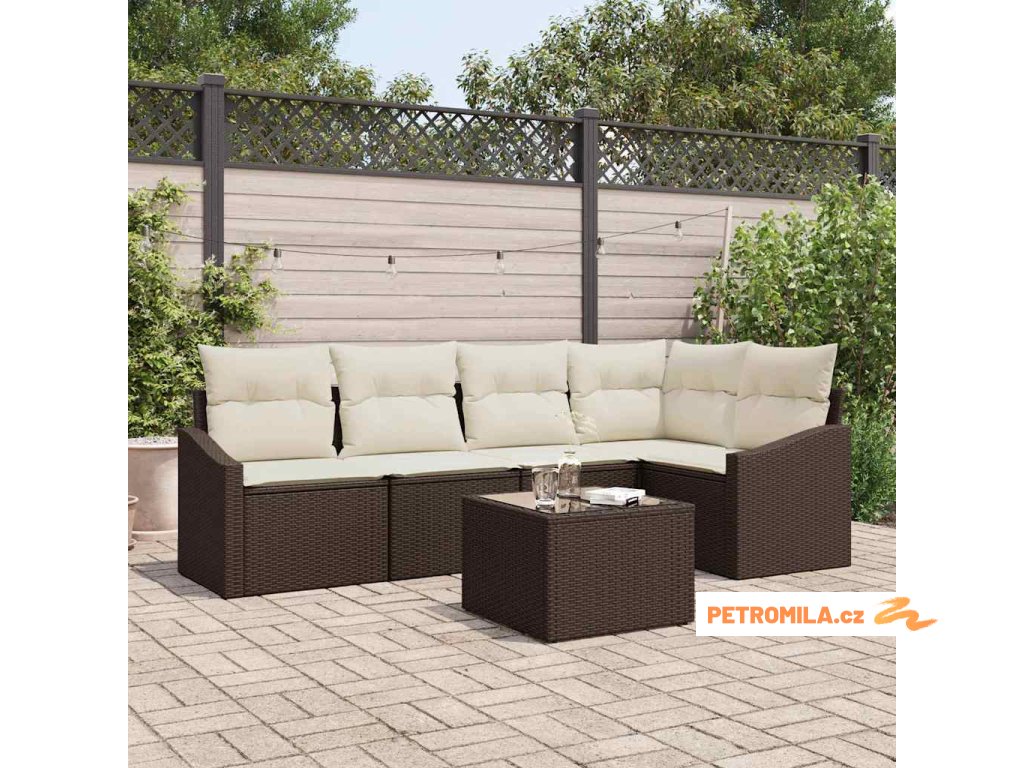 Set pohovek s polštářem 6 pcs Hnědá polyratan