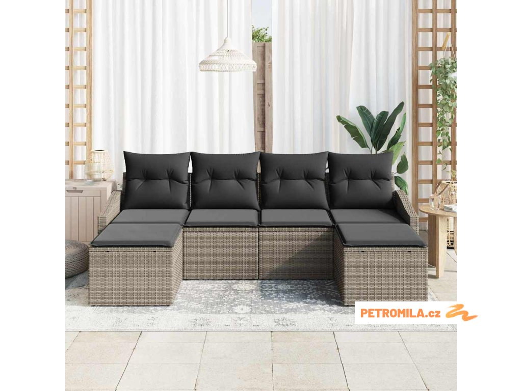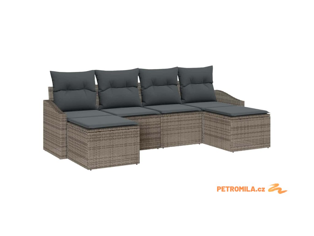 Set pohovek s polštářem 6 pcs Šedá polyratan
