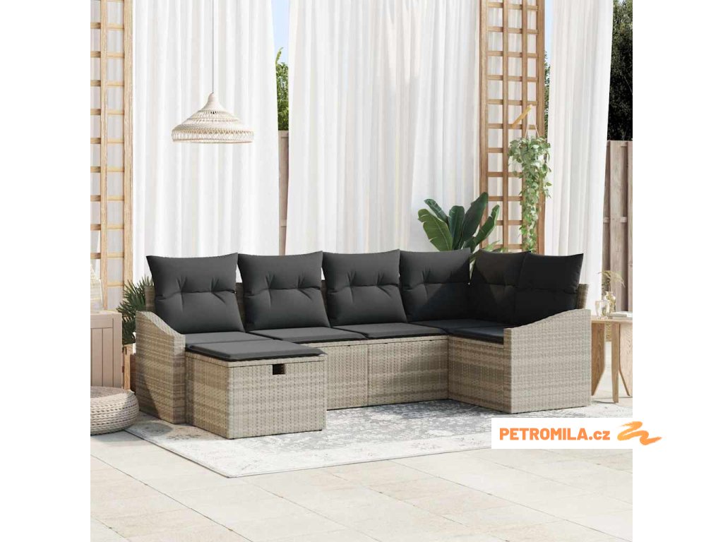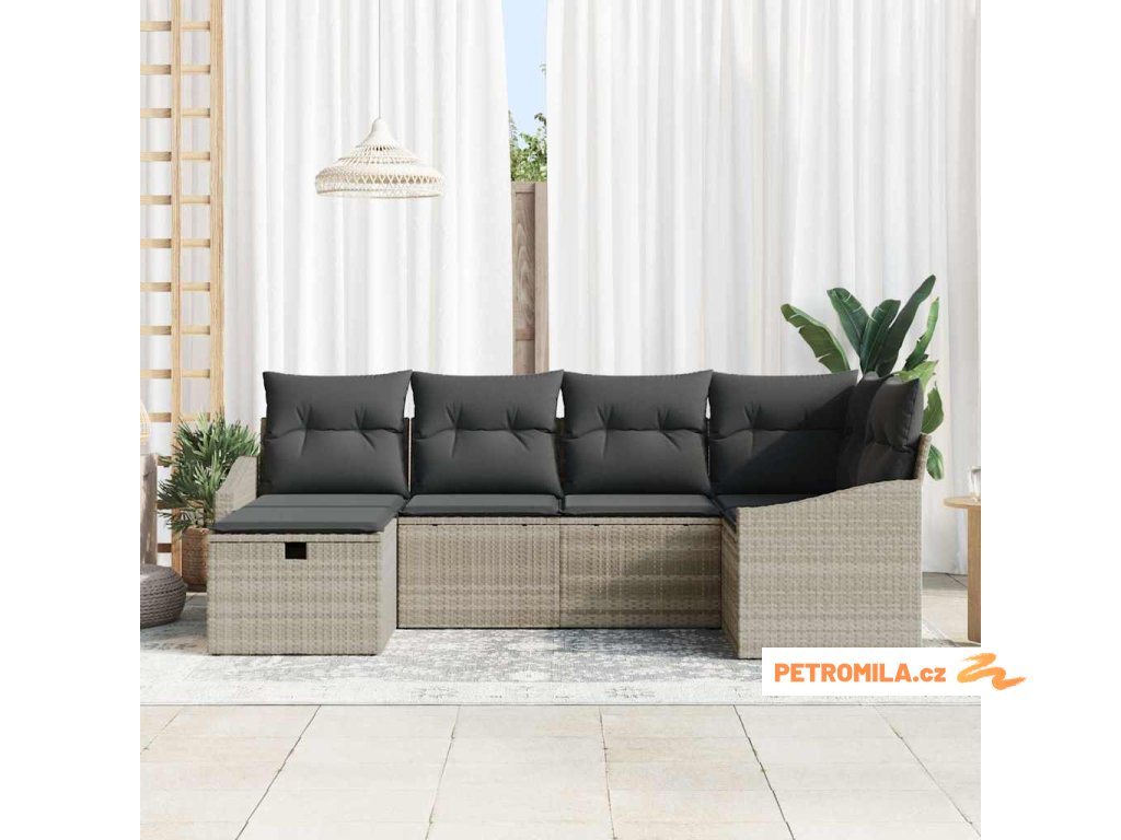 Set pohovek s polštářem 6 pcs Světlá šedá a šedá polyratan