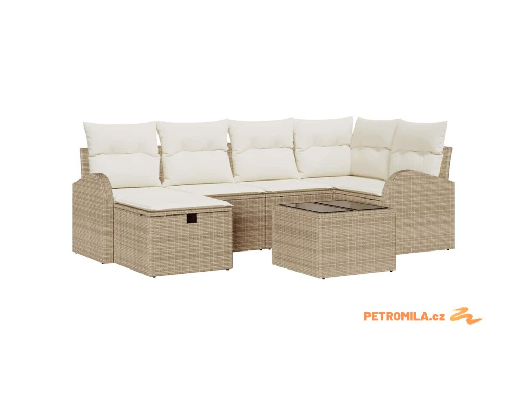 Set pohovek s polštářem 7 pcs Béžová a krémová polyratan