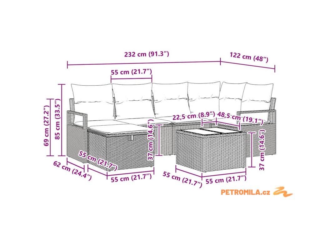 - Funkce / Design: Sedací set s modulárním designem nabízí flexibilní uspořádání, které se hodí do každého prostoru nebo na jakoukoliv příležitost. Lehká konstrukce tvoří jednoduché přesouvání a přizpůsobení. Kombinuje eleganci a pohodlí, takže se skvěle hodí do jakéhokoli venkovního prostředí.