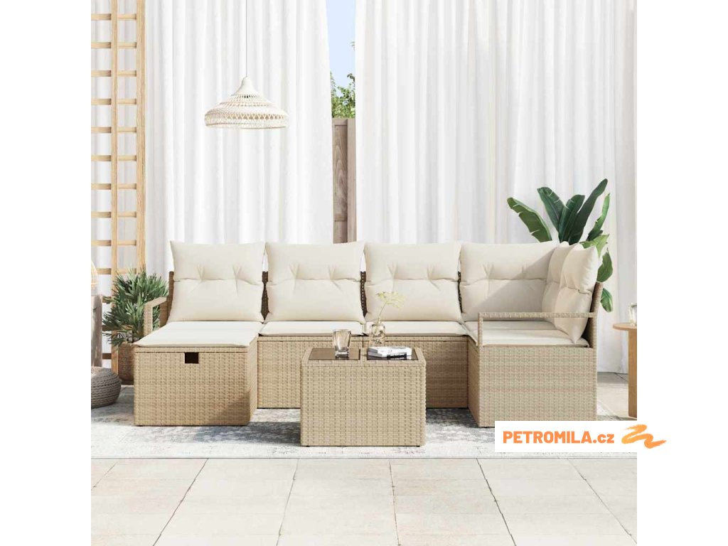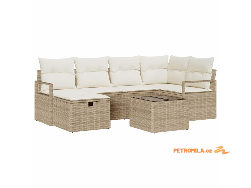 Set pohovek s polštářem 7 pcs Béžová a krémová polyratan