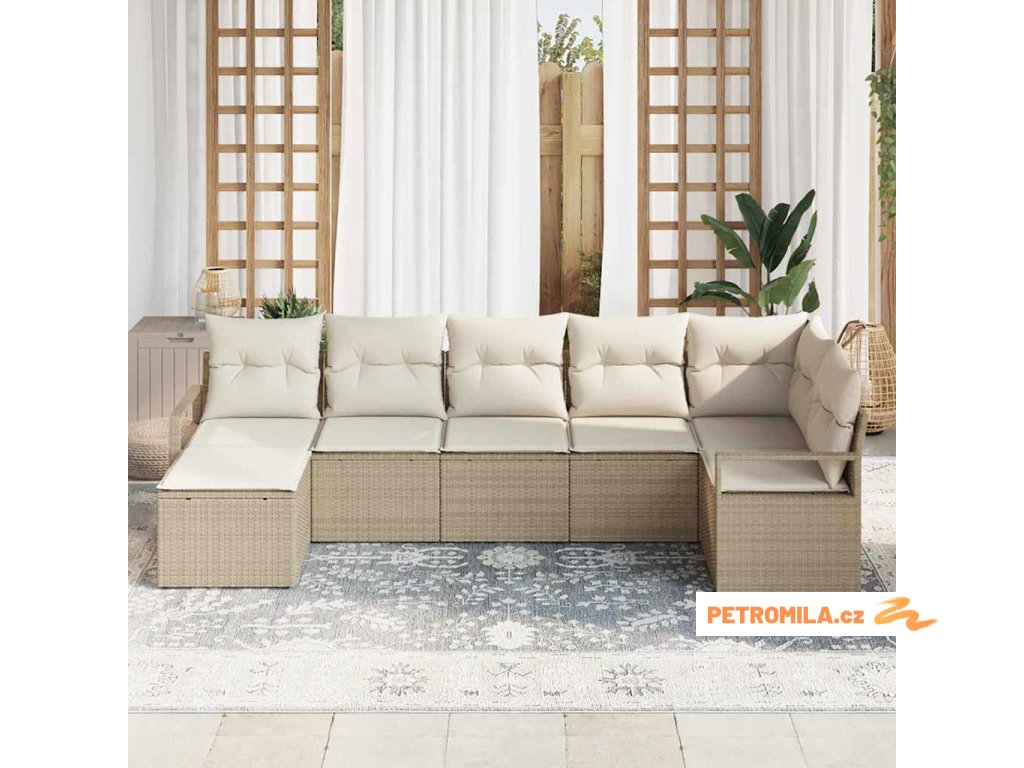 Set pohovek s polštářem 7 pcs Béžová a krémová polyratan