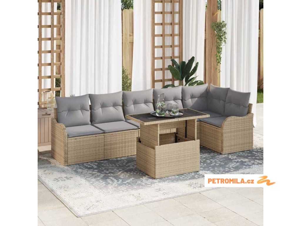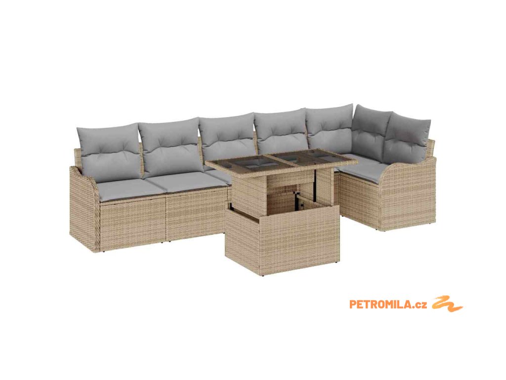 Set pohovek s polštářem 7 pcs Béžová Poly ratan