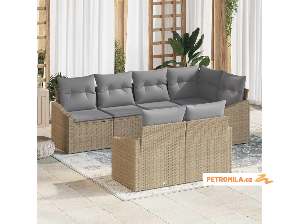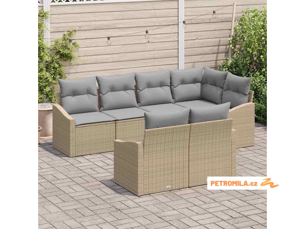 Set pohovek s polštářem 7 pcs Béžová polyratan