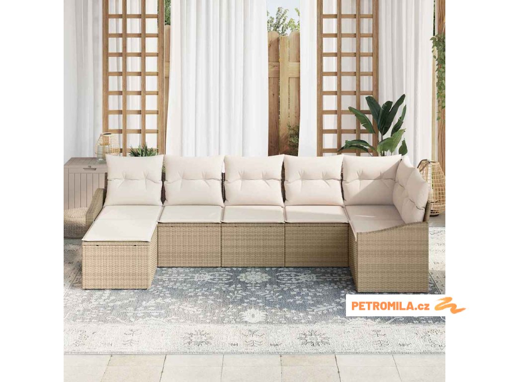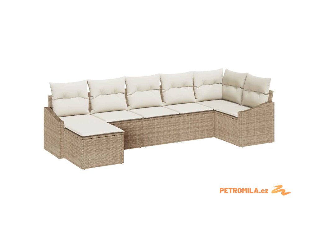 Set pohovek s polštářem 7 pcs Béžová polyratan
