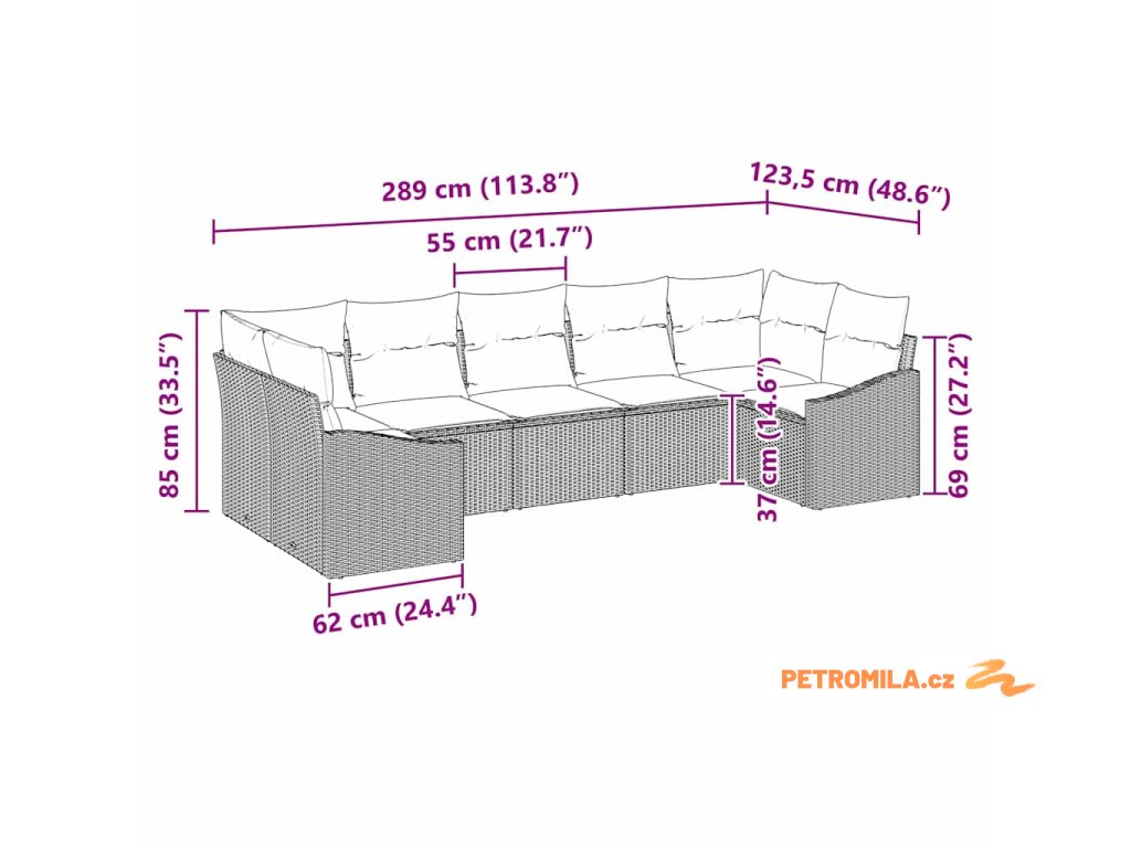 Sada zahradních pohovek s polštářem 9 pcs Béžová Poly ratan