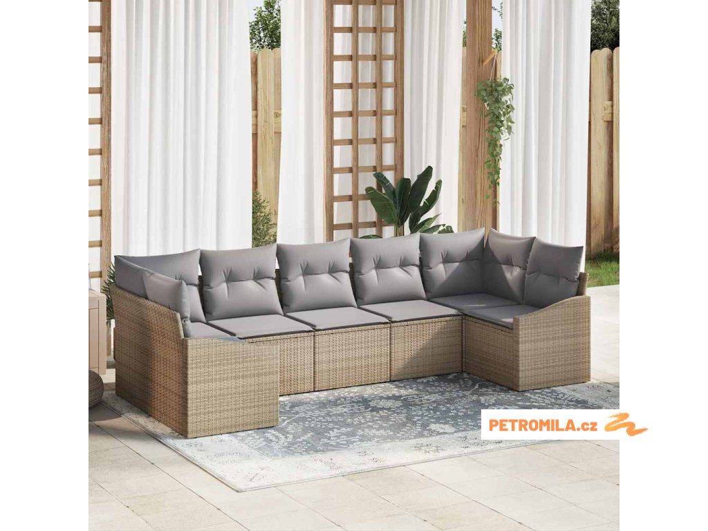 Set pohovek s polštářem 7 pcs Béžová polyratan