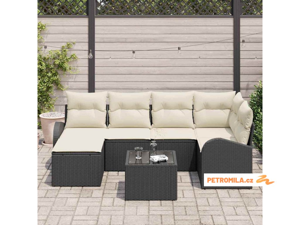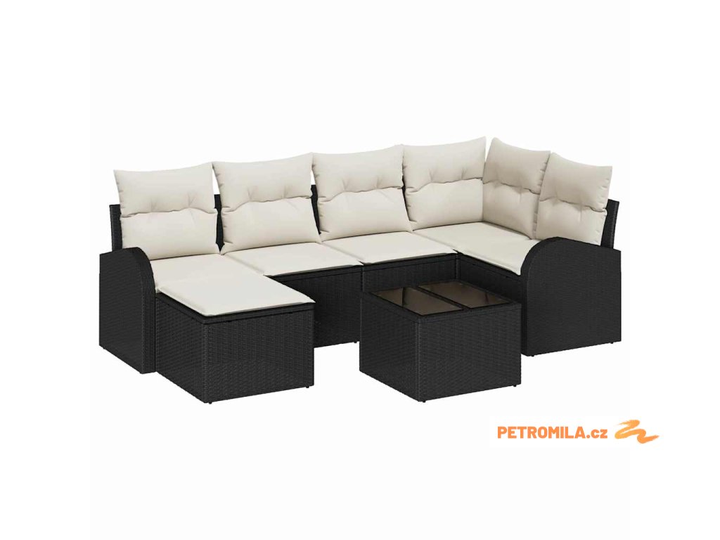 Set pohovek s polštářem 7 pcs Černá a bílá polyratan