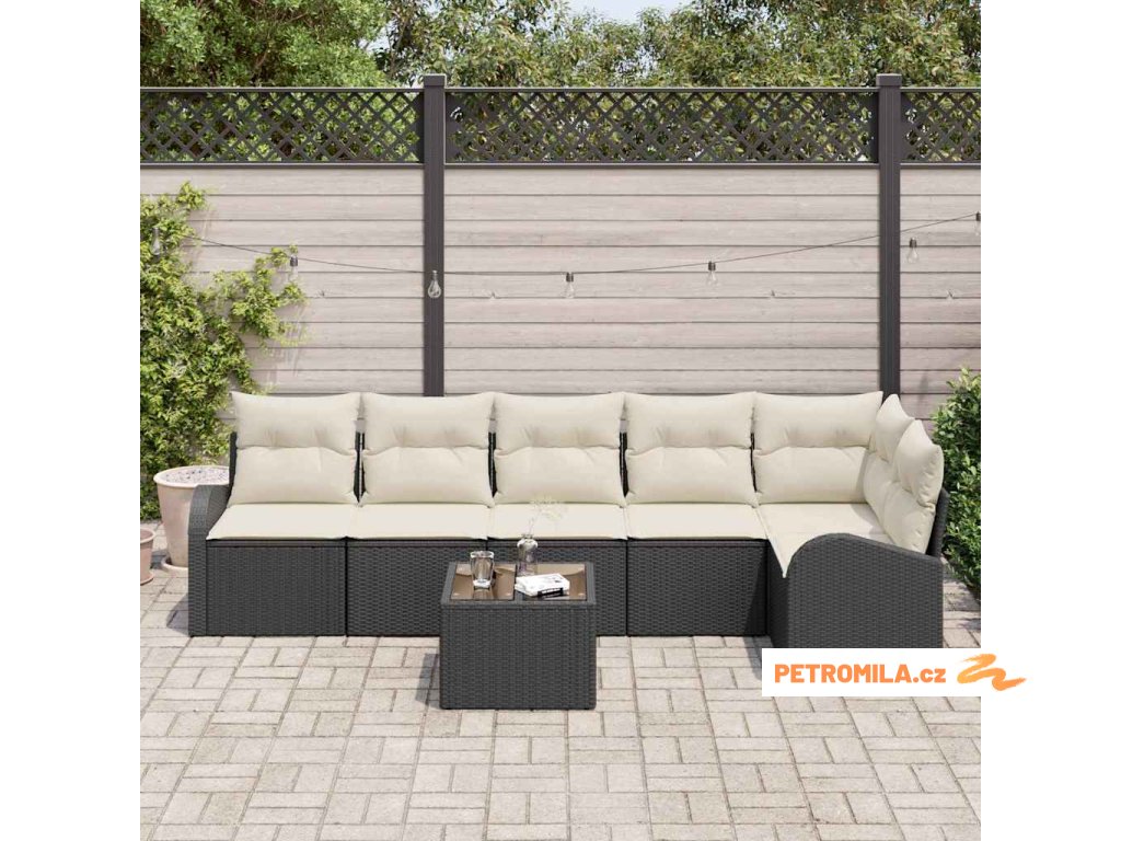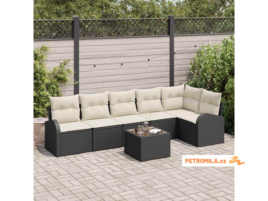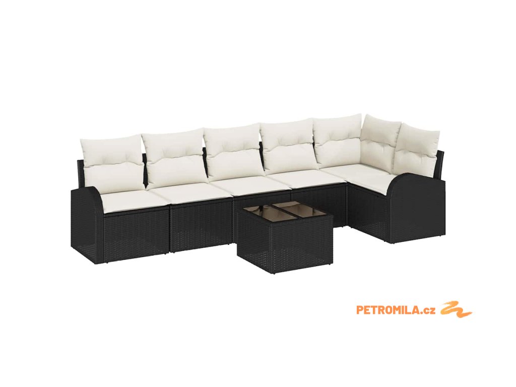 Set pohovek s polštářem 7 pcs Černá a bílá polyratan