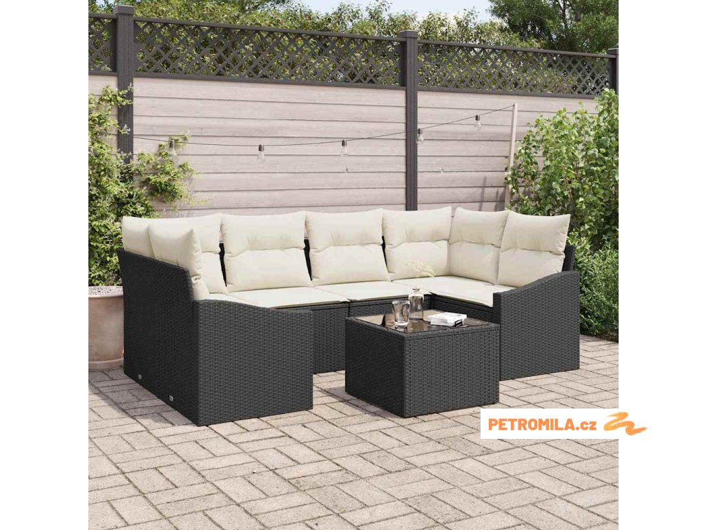 Set pohovek s polštářem 7 pcs Černá a krémová polyratan