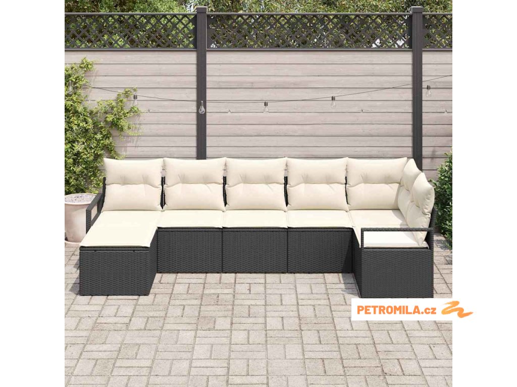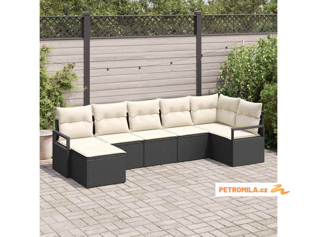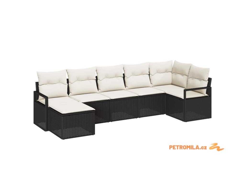 Set pohovek s polštářem 7 pcs Černá a krémová polyratan