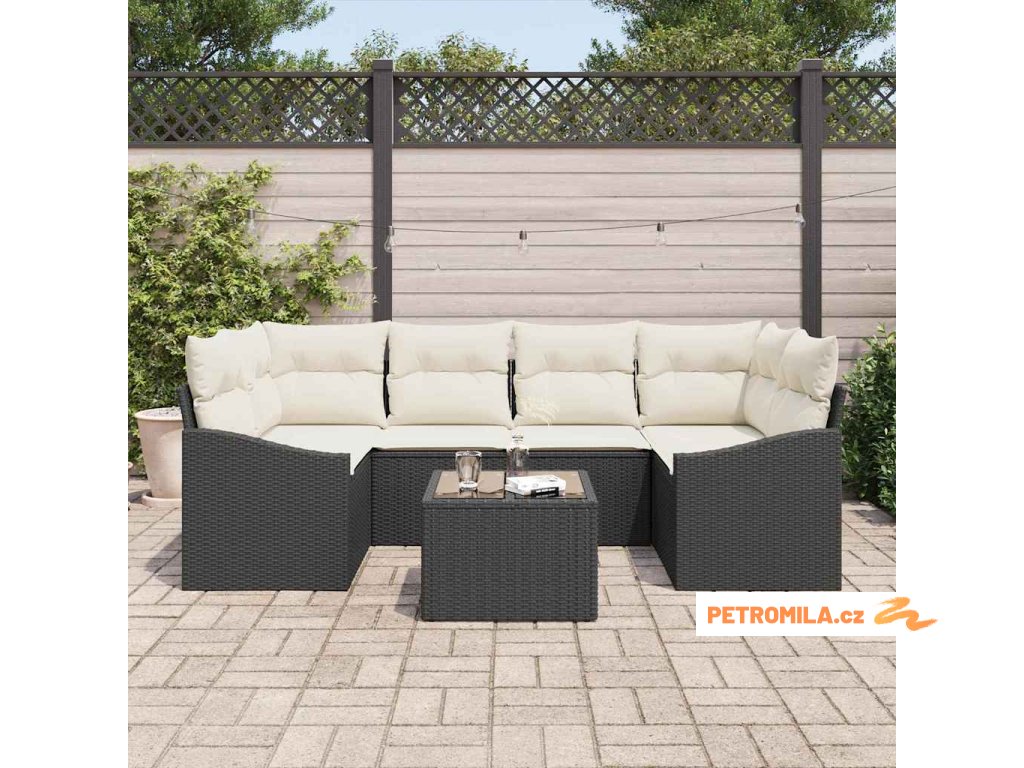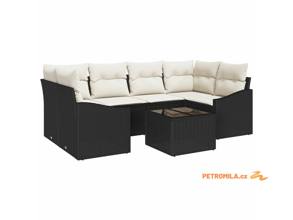 Set pohovek s polštářem 7 pcs Černá a krémová polyratan