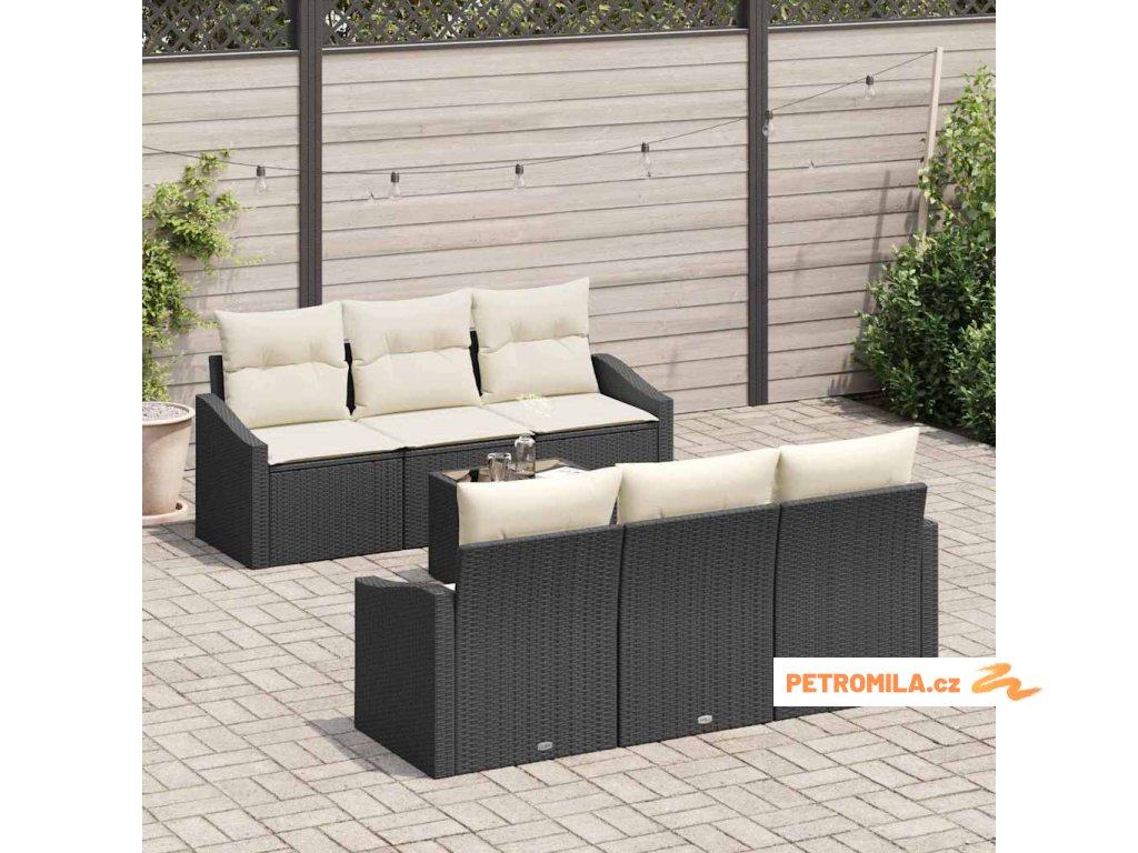 Set pohovek s polštářem 7 pcs Černá a krémová polyratan