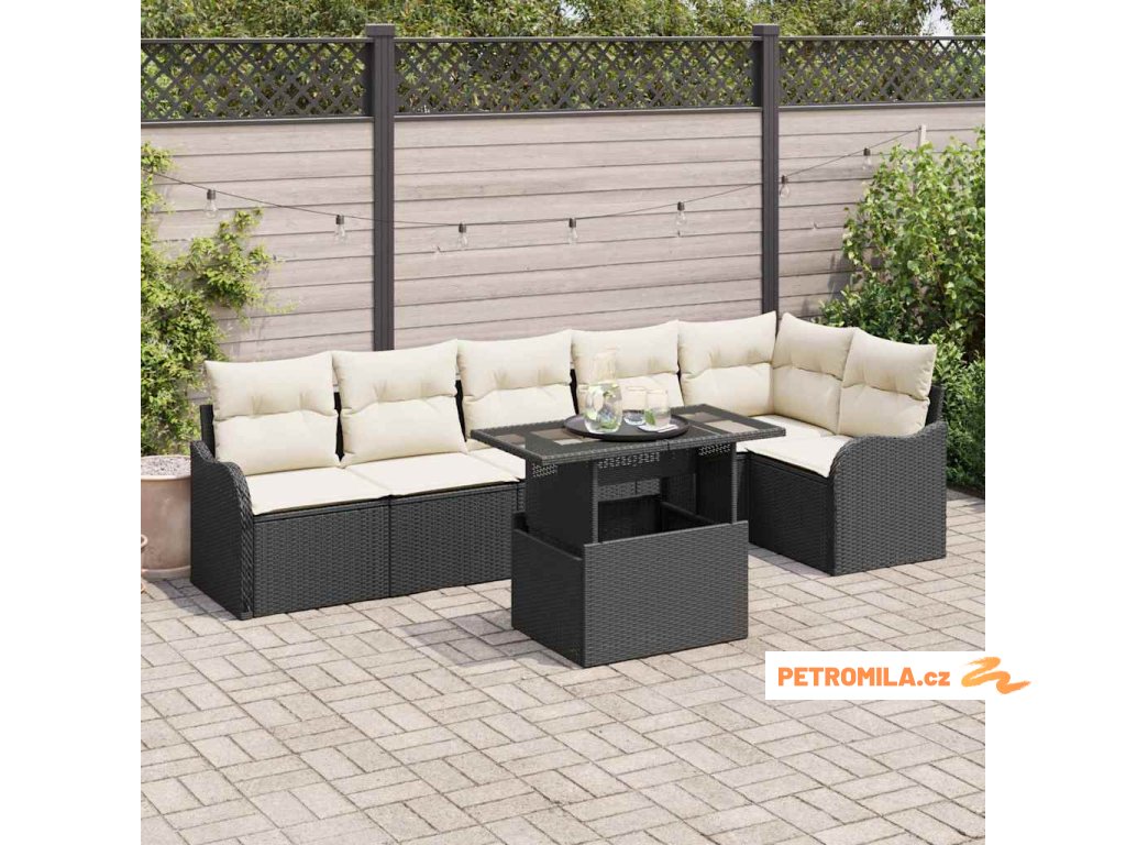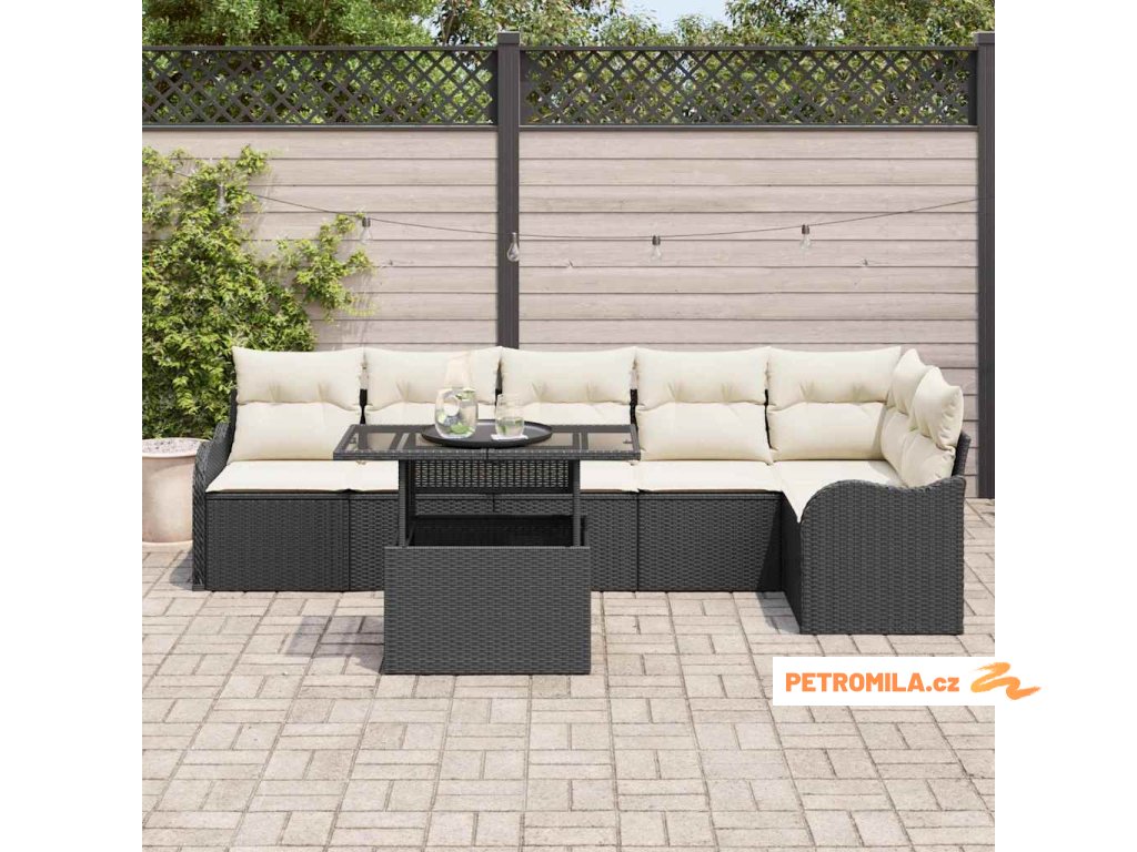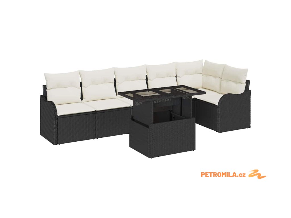 Set pohovek s polštářem 7 pcs Černá Poly ratan