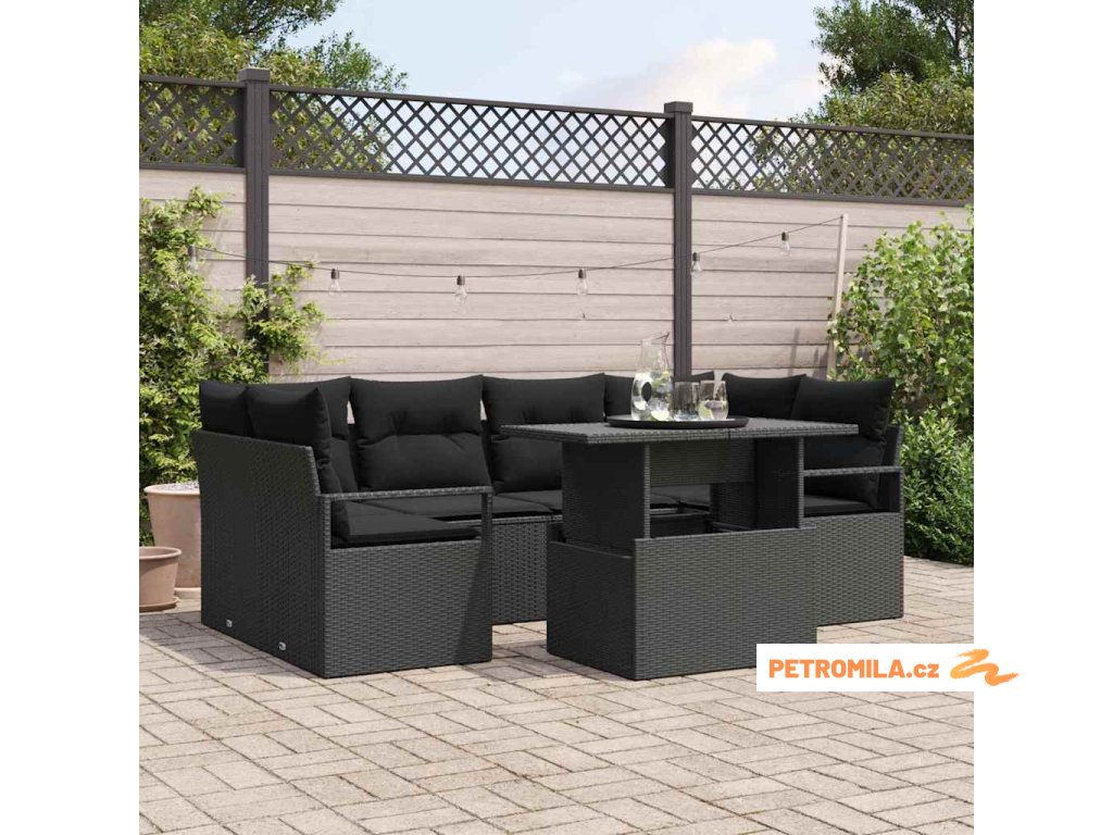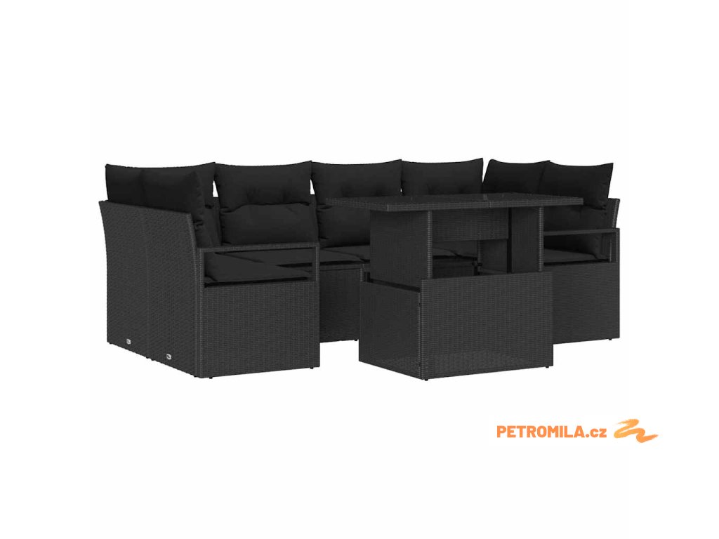 Set pohovek s polštářem 7 pcs Černá polyratan