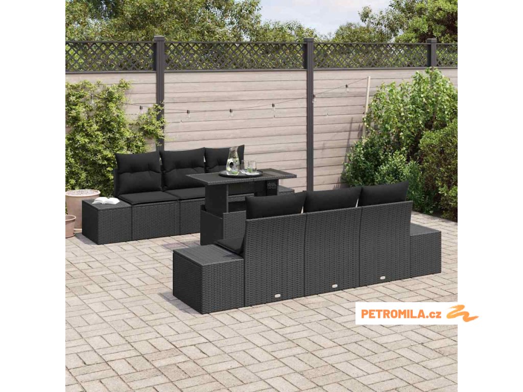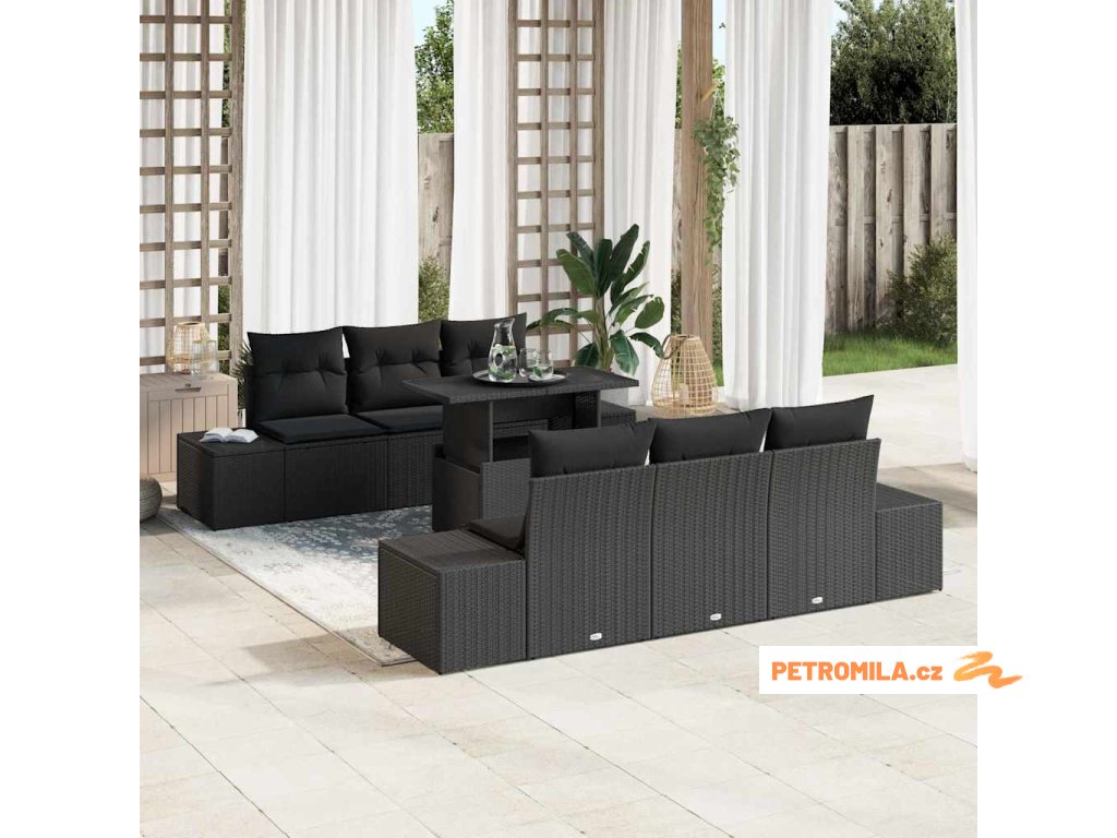 Set pohovek s polštářem 7 pcs Černá polyratan