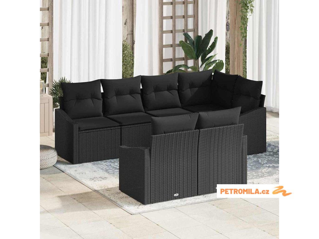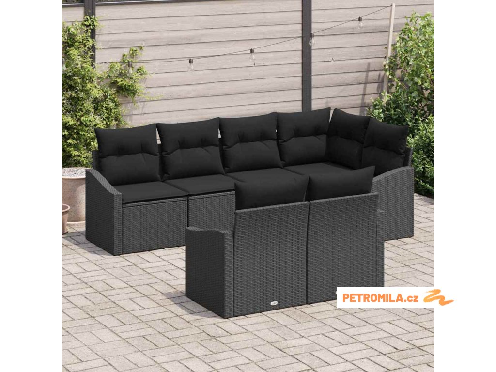 Set pohovek s polštářem 7 pcs Černá polyratan
