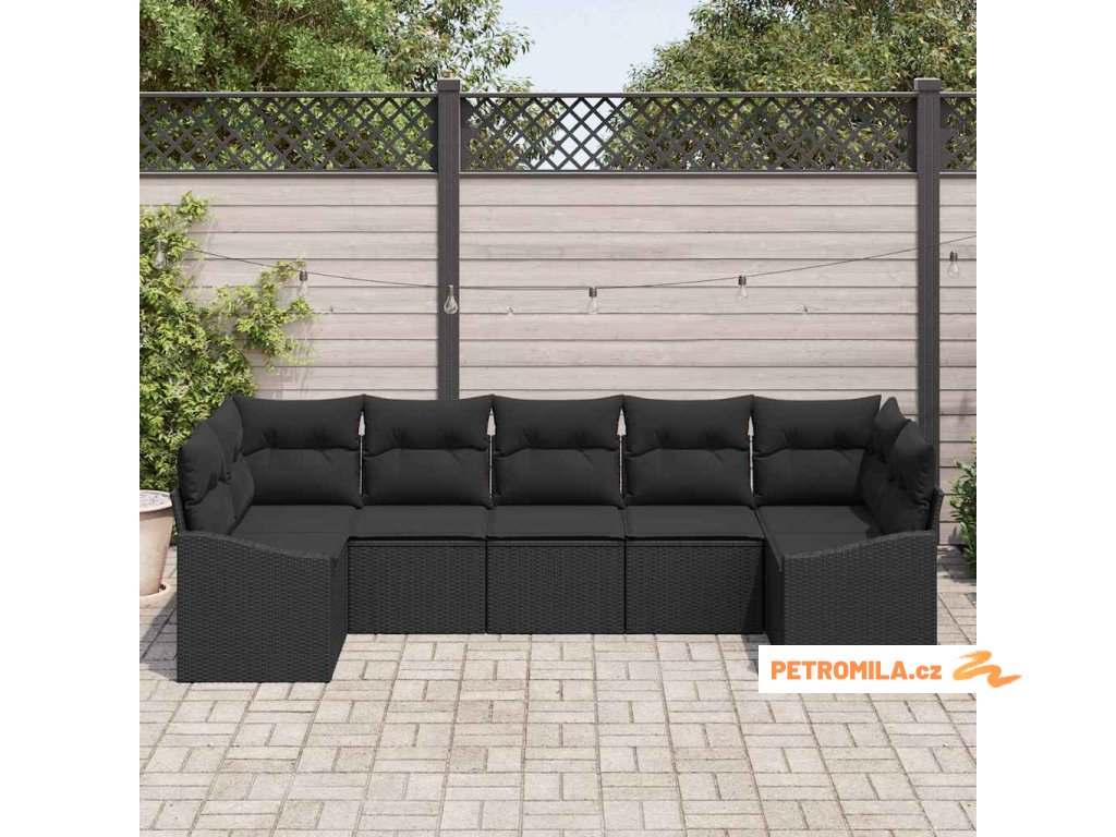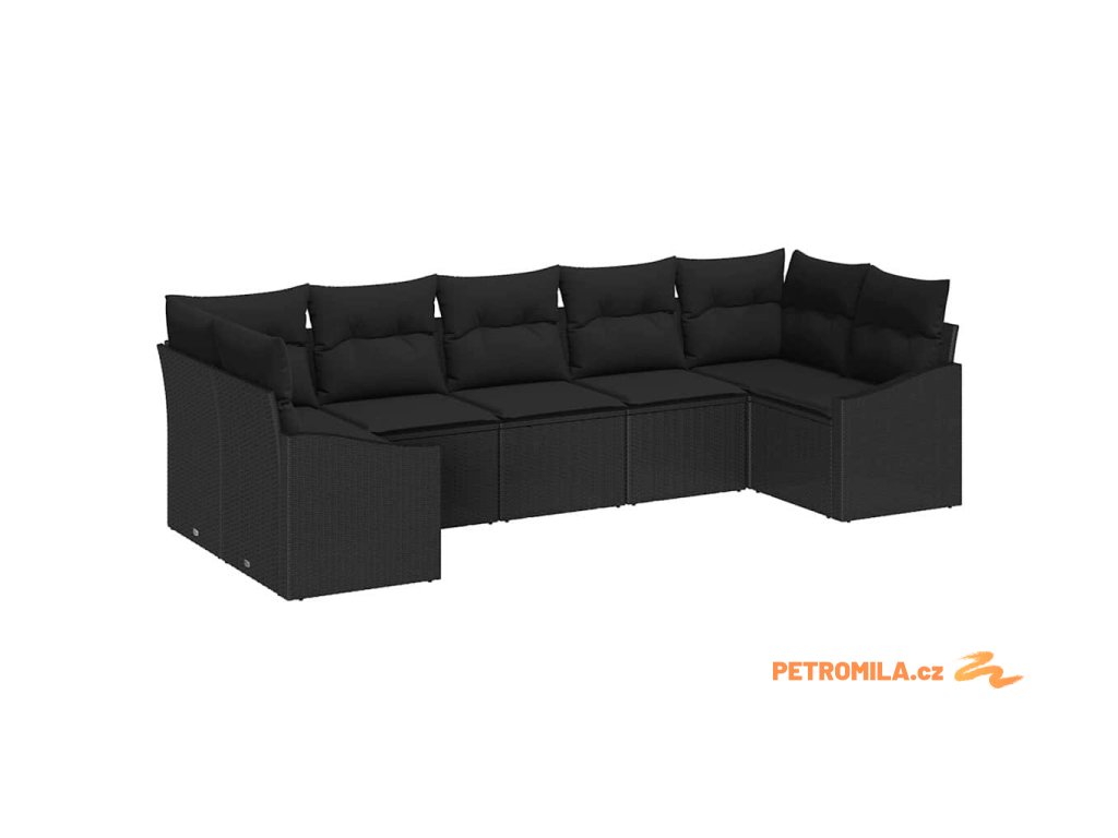 Set pohovek s polštářem 7 pcs Černá polyratan